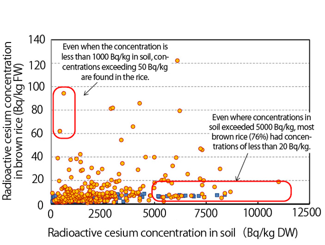 Even when soil concentrations exceeded 5,000 Bq/kg, the cultivated