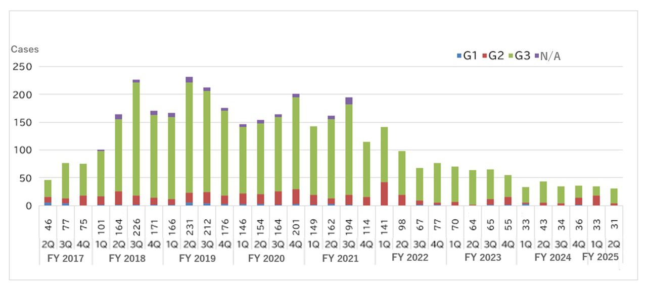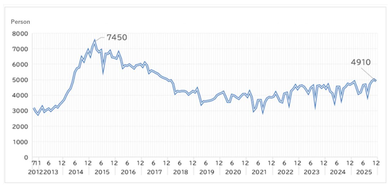 As of December 2025, the number of workers was 4,910. The number of reports of non-compliant work cases is trending downwards (Fig,4).