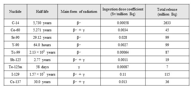 It is clear that extremely large amounts of radioactive substances, including 2.633 billion Bq of carbon-14 and 115 million Bq of iodine-129, have been released.