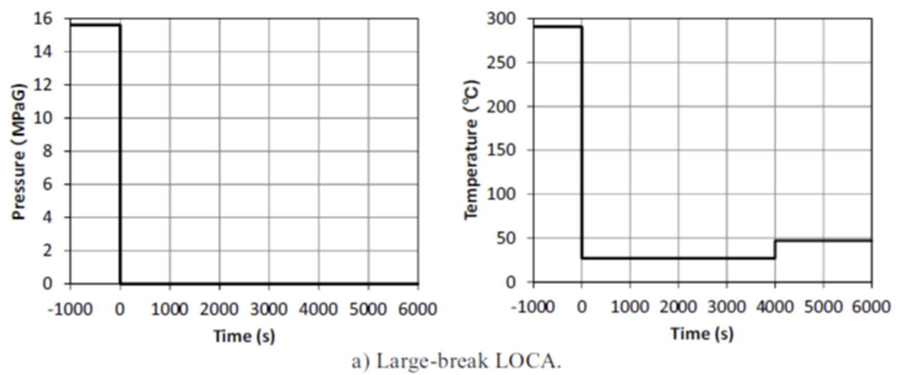 The boundary conditions are determined depending on the scale of the LOCA. In the case of a large-break LOCA, the boundary conditions are assumed to be as shown in Fig. 2.