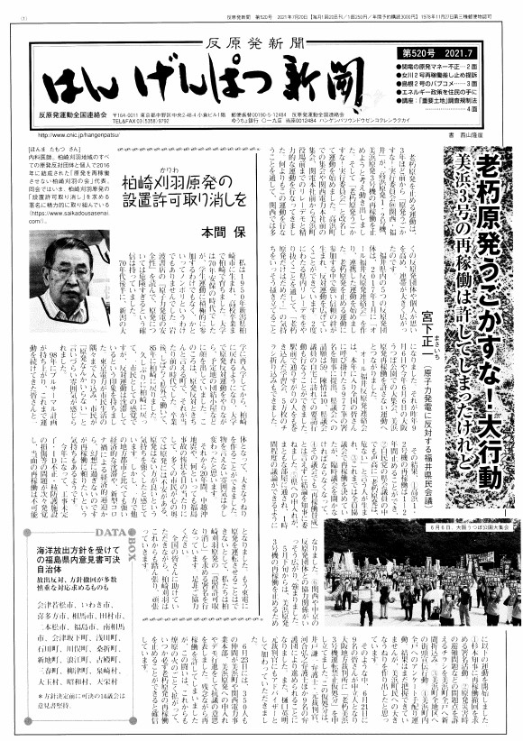 老朽原発うごかすな!大行動 美浜3号の再稼働は許してしまったけれど 宮下正…